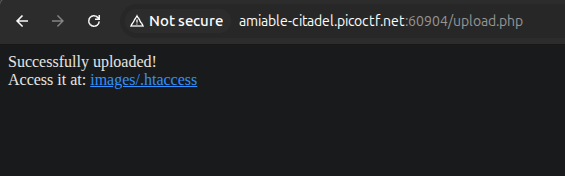So Now we need another way I took a look at the hints and it said to use .htaccess file to execute php files and also helps us bypass the extension filter so let’s try it.